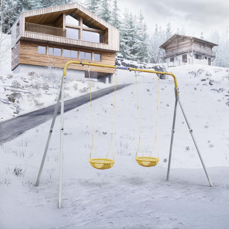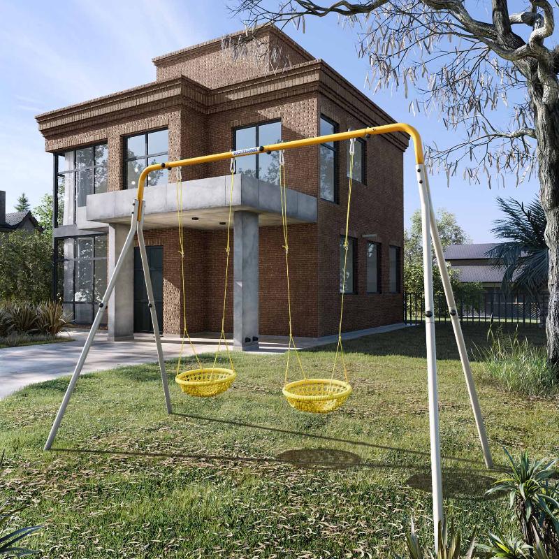 Металлический каркас идеально подходит для установки различных видов и модификаций качелей. Некоторые качели имеют специальные спинки и поручни, предназначенные для маленьких детей, в то время как старшие дети предпочитают качели с перекладиной и сиденьем. Качели подвешиваются на прочных и надежных канатах, которые долгое время не изнашиваются.