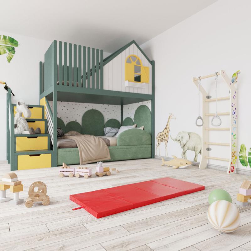 Коврик однотонный, представлен в различных цветовых вариациях нежных и ярких оттенков. Благодаря большому выбору, цвет мягкого щита без труда можно подобрать по своему вкусу и в любой интерьер.Как выбрать мат для своей шведской стенки?