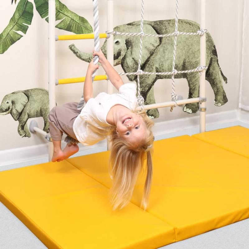 Параметры изделия: 1000*1500*60мм в разложенном виде, и 1000*500*180мм в собранном соответственно. Благодаря своим небольшим габаритам в сложенном виде, мат практичен в хранении и транспортировке. Габариты изделия позволяют создать безопасную зону во время занятий на шведской стенке. Мат подойдет для различных комплектаций спортивного комплекса, в том числе с навесным оборудованием (лестницами и кольцами), и с канатным лазом или скалолазом. Кроме того, габариты мягкого щита позволяют создать полноценный спортивный уголок для физической активности. Мягкий щит отлично подходит для выполнения упражнений, гимнастики, йоги, аэробики и др. Множество эффектных цветовых сочетаний позволят подобрать мат для любого интерьера. Однотонные маты представлены в двух универсальных цветах – сером и бежевом. Нежные оттенки деликатно дополнят интерьер. Сочные расцветки двусторонних матов добавят красок в обстановку комнаты. Особенностью двусторонних матов является разная расцветка для его сторон. Благодаря этому, поменять цвет мата очень просто – достаточно перевернуть мягкий щит на другую сторону.