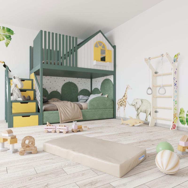 Изделие представлено в различных цветовых решениях, что позволяет подобрать вариант для любого интерьера. Однотонные маты представлены в нежных оттенках бежевого и серого. Универсальные цвета мягко впишутся в интерьер и гармонично дополнят его. Яркий желтый разнообразит цветовые варианты однотонных матов, дерзко контрастируя с мягкими оттенками. Эффектные сочетания двусторонних матов добавят красок в обстановку игровой зоны, а их конструкция позволяет менять цвет изделия в любой момент, просто перевернув его.Как выбрать мат для своей шведской стенки?