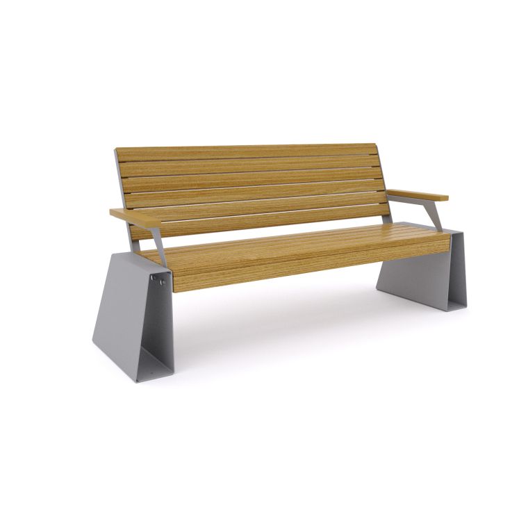 Скамья "Гранит" с подлокотниками 15 (брус) (светлое дерево T1802+серый металл) (анкерное)