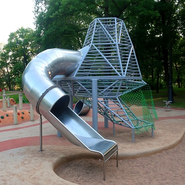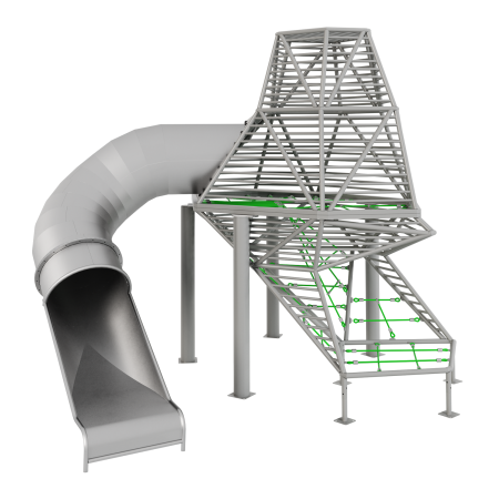 Каркас - сталь конструкционная, покрытие - цинкосодержащий грунт, окраска полимерным порошком. Горки, скаты - сталь нержавеющая толщиной не менее 2 мм, электрохимическая пассивация сварных швов.