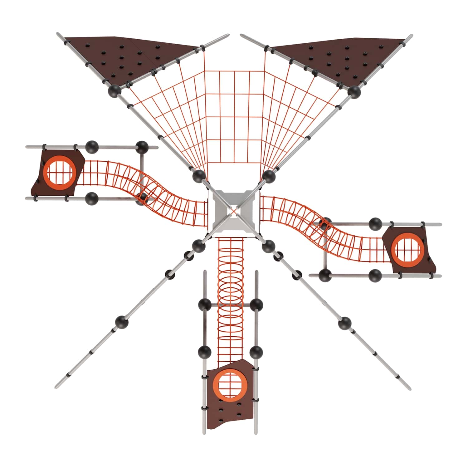 Канатные сети, лазы, ограждения - канат армированный 16 мм. Зацепы для скалолазания - пескобетонный композит.