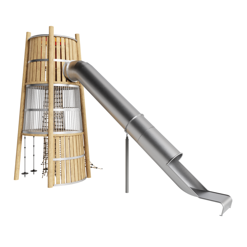 Каркас, обшивка - дерево, обработанное антисептиком и маслом террасным атмосферостойким для древесины в 2 слоя. Горка - сталь нержавеющая AISI 304 толщиной не менее 2 мм, электрохимическая пассивация сварных швов. Канатные сети - канат армированный 16 мм.