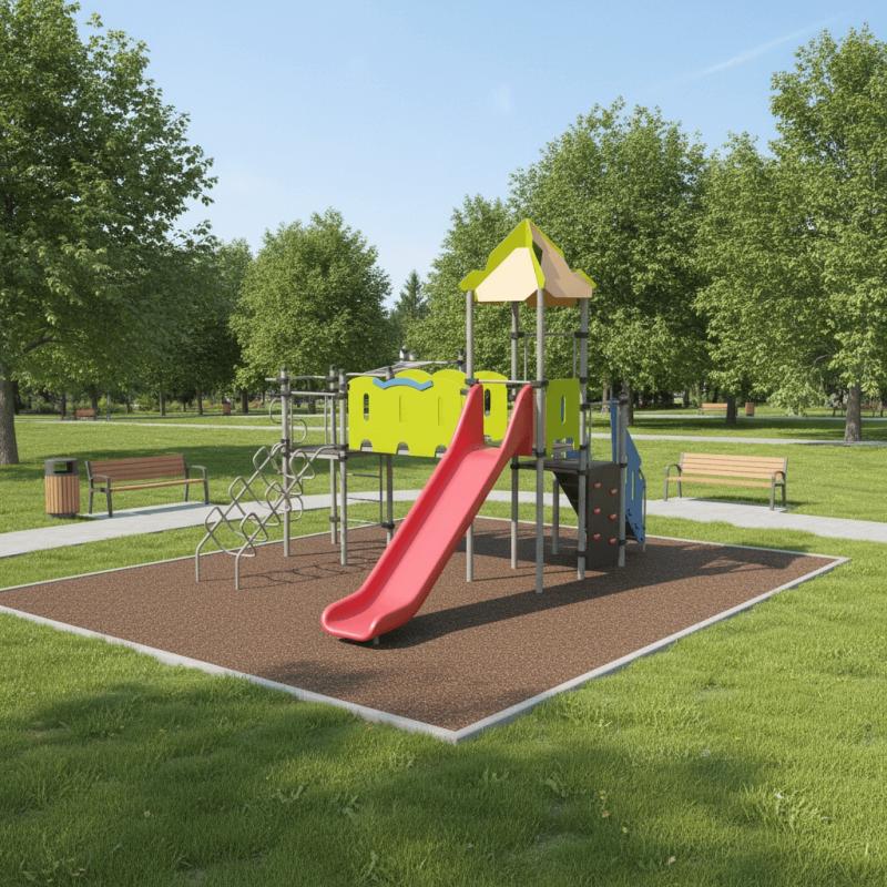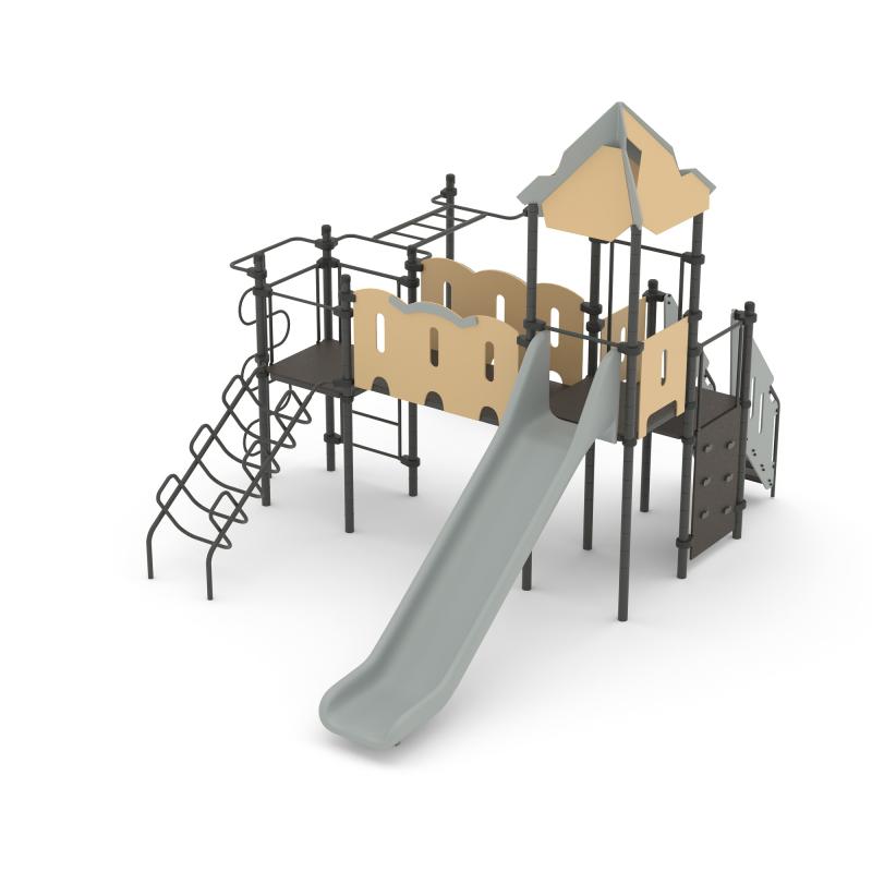 Детская площадка «Romana 101.10.09» - это комплекс с домиком и горкой, рукоходами и лазами. Различными лестницами. Помогает развивать у детей гибкость, ловкость и укреплять мышцы.Изделие устанавливается на открытых уличных участках, находящихся под контролем ответственного лица – эксплуатанта. Установка Изделия должна проводится на ровной площадке, свободной от насаждений. В зоне приземления должно быть ударопоглощающее покрытие (песок, древесные опилки) минимальной толщиной 300 мм