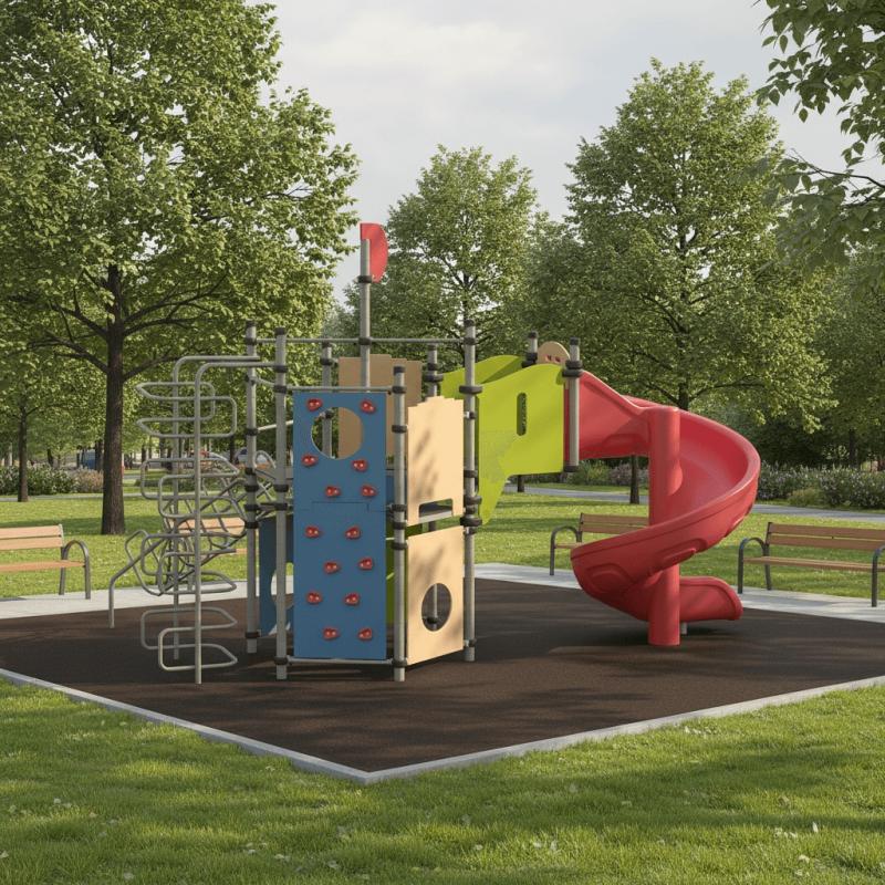 Игровой комплекс для тематических игр и физического развития предназначен для детей в возрасте от 4 лет. Изделие представляет собой сборно-разборную каркасную конструкцию из металлических труб, установленную на забетонированные стойки.Изделие устанавливается на открытых уличных участках, находящихся под контролем ответственного лица – эксплуатанта. Установка Изделия должна проводится на ровной площадке, свободной от насаждений. В зоне приземления должно быть ударопоглощающее покрытие (песок, древесные опилки) минимальной толщиной 300 мм