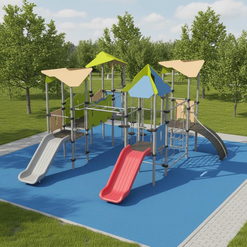 Детская площадка «Romana 101.12.00» - игровой комплекс с переходами, различными лесенками и горками, канатами и сеткой для лазанья. Помогает развить ребенку ловкость и гибкость, а так же укрепить мышцы.Изделие устанавливается на открытых уличных участках, находящихся под контролем ответственного лица – эксплуатанта. Установка Изделия должна проводится на ровной площадке, свободной от насаждений. В зоне приземления должно быть ударопоглощающее покрытие (песок, древесные опилки) минимальной толщиной 300 мм.