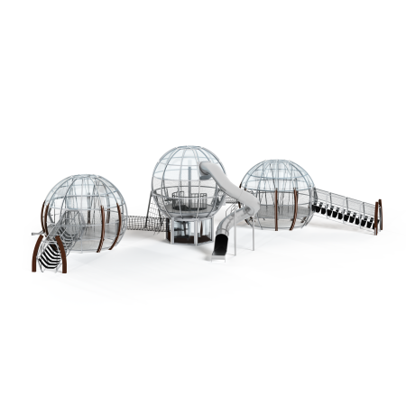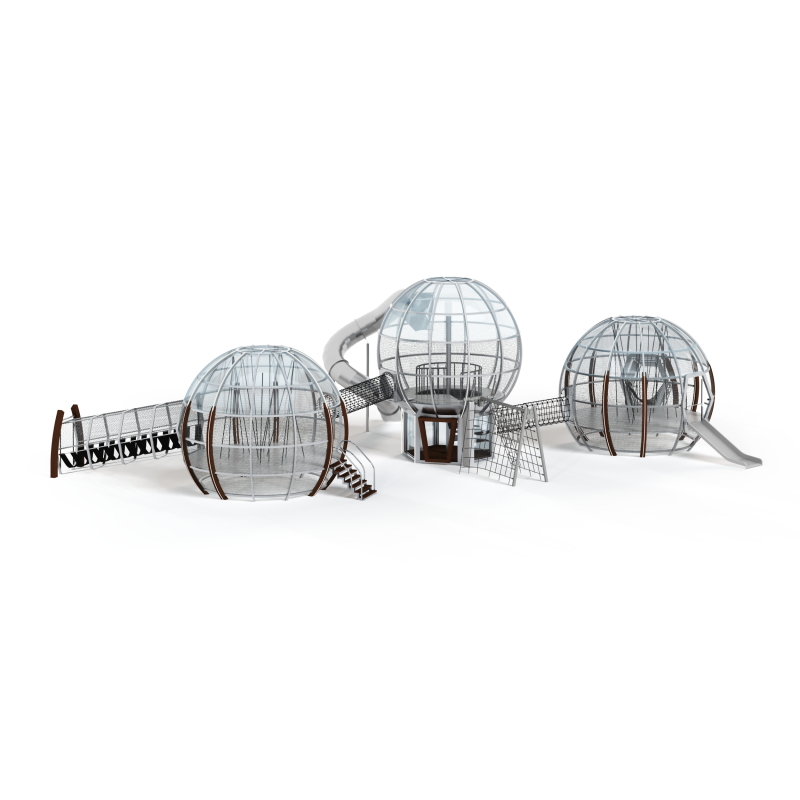 Каркас - сталь конструкционная, покрытие - цинкосодержащий грунт, окраска полимерным порошком (RAL по согласованию). Обшивка – лиственница, покрытие - масло террасное атмосферостойкое. Горки - сталь нержавеющая толщиной не менее 2 мм, электрохимическая пассивация сварных швов. Канатные сети - канат армированный 16 мм. Монолитный поликарбонат.