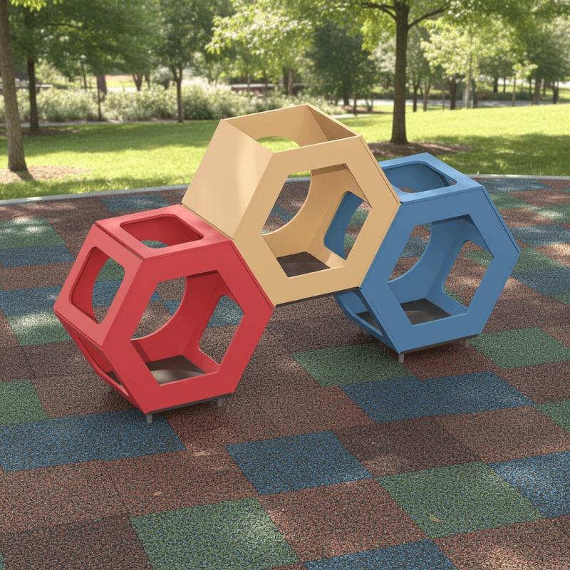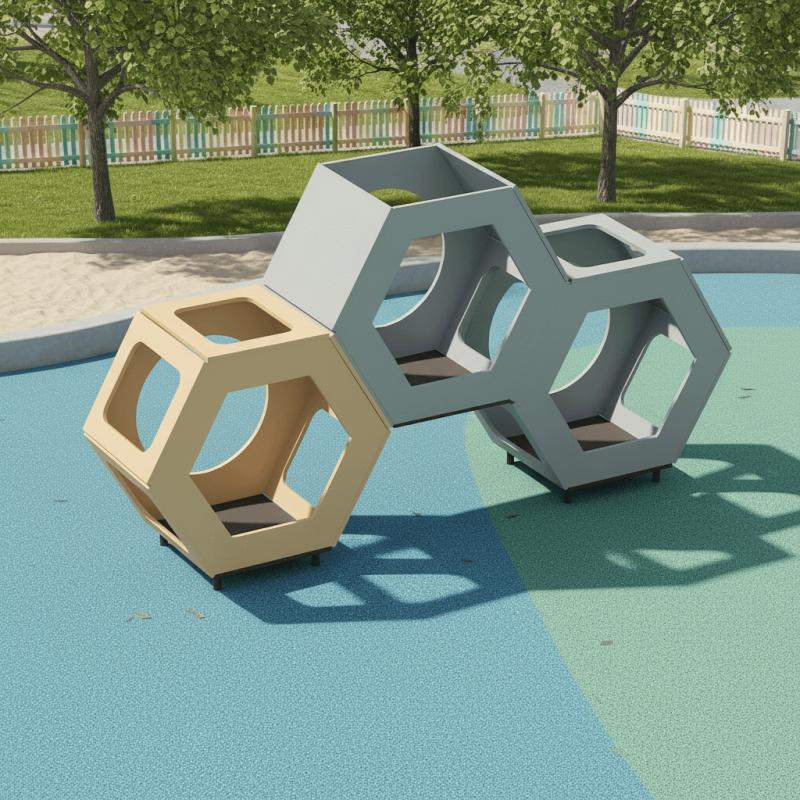 Игровой модуль для тематических игр и физического развития предназначен для детей в возрасте от 4 до 8 лет. Изделие должно представлять собой устойчивую конструкцию, обеспечивающую безопасные условия для занятий на открытом воздухе. Конструкция должна обладать высокой ударопрочностью и виброустойчивостью. В сборе представляет собой конструкцию в виде секций из трех шестигранных игровых элементов (различных исполнений) в сборе.