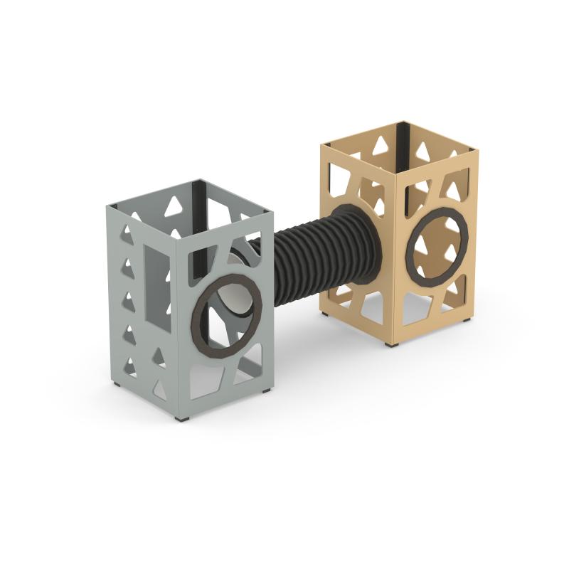 Игровой модуль для тематических игр и физического развития предназначен для детей в возрасте от 4 до 8 лет. Изделие должно представлять собой устойчивую конструкцию, обеспечивающую безопасные условия для занятий на открытом воздухе. Конструкция должна обладать высокой ударопрочностью и виброустойчивостью.В сборе представляет собой конструкцию в виде двух прямоугольных вертикальных изделий, собранных со стенками с помощью уголков, установлены на грунтозацепы. Два изделия связаны между собой лазом-трубой.