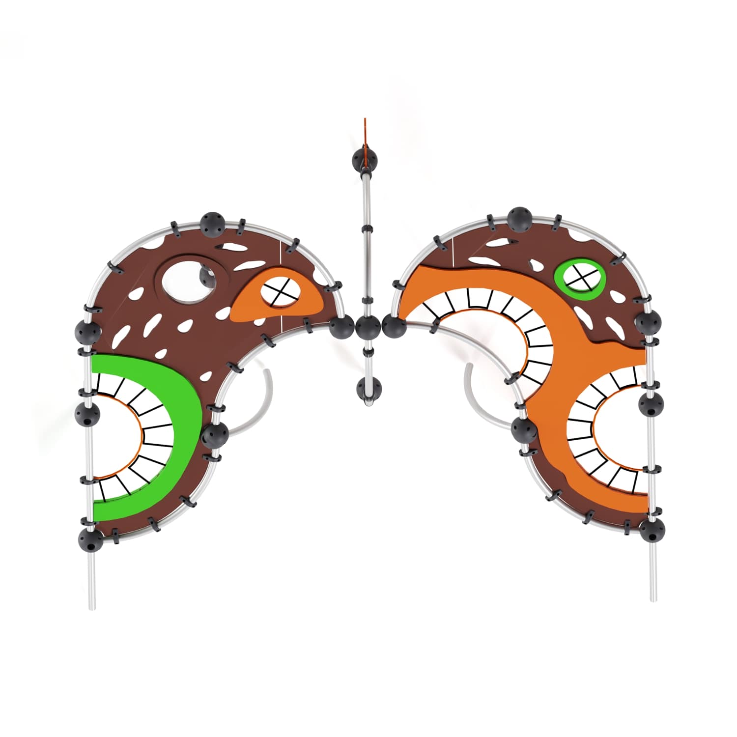 Каркас - сталь конструкционная, покрытие - цинкосодержащий грунт, окраска полимерным порошком. Панели - полипропилен/ПНД. Канатные сети, лазы - канат армированный 16 мм.