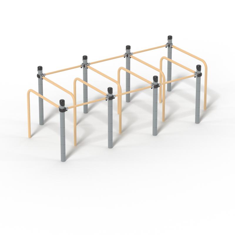 Лабиринт «Romana 206.01.00» - это строение в виде двух систем соединенных между собой турников. Хорошо помогает развивать координацию, ловкость, гибкость, тренирует мышцы. Подходит для детей любого возраста.