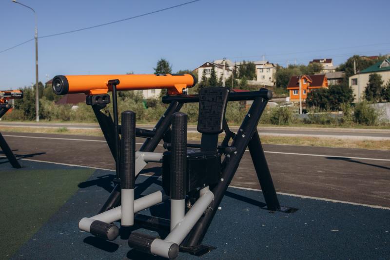 Спортивное уличное оборудование для изолирующего силового упражнения «Разведение ног в тренажере сидя».
